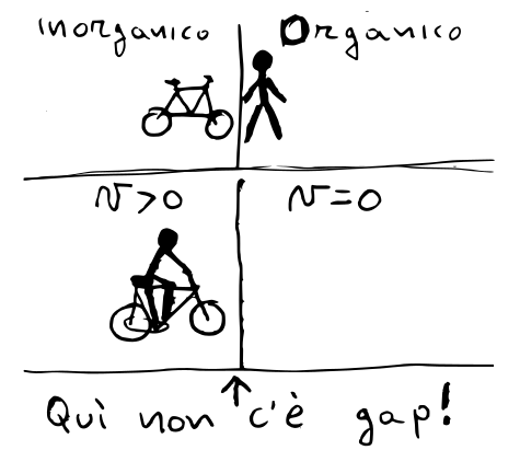 This is as silly as it can be: a person and a bicycle fall in distinct buckets when looking at organic and inorganic spaces/categories.